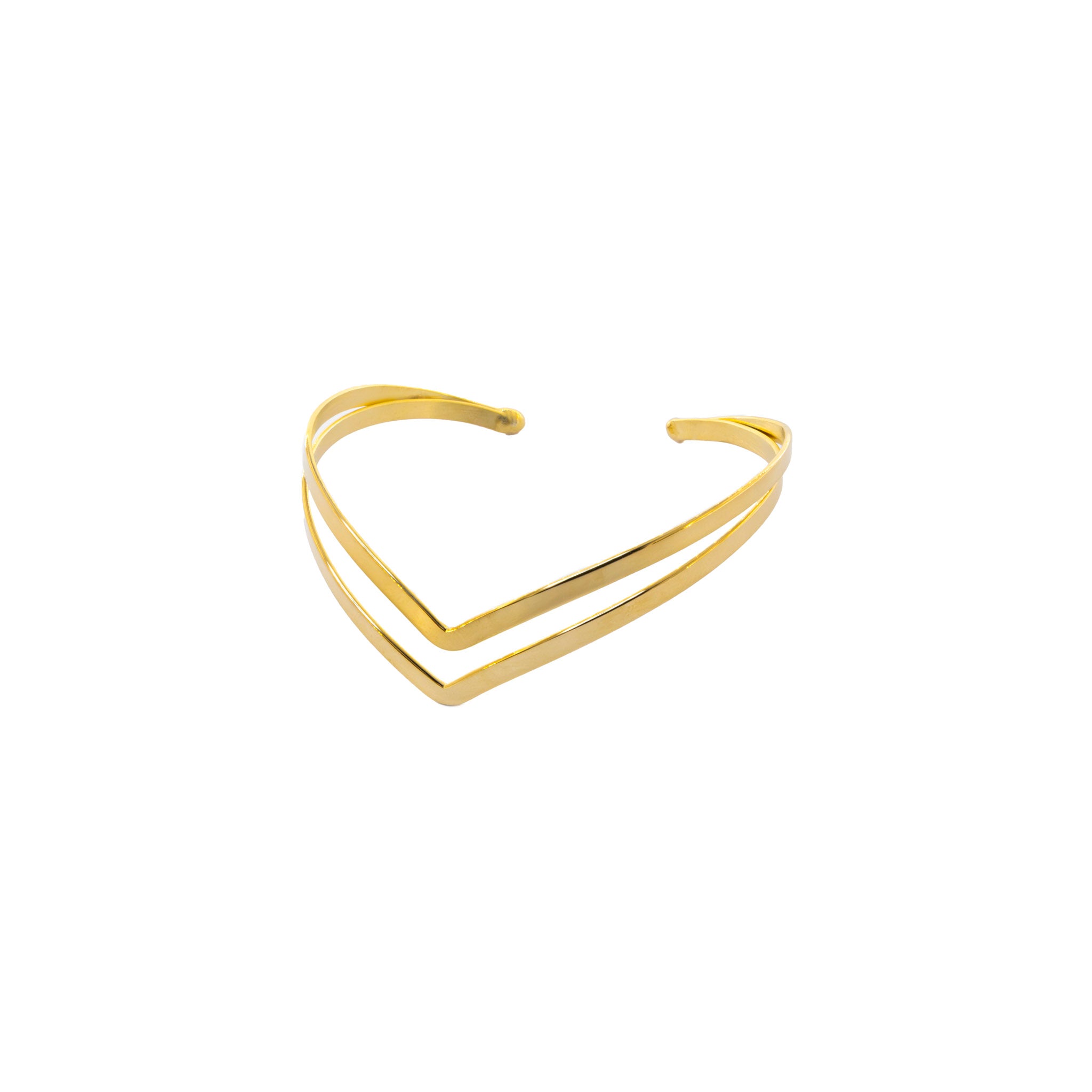 Two golden lines in a V shape. Minimalist geometry that hugs the wrist.