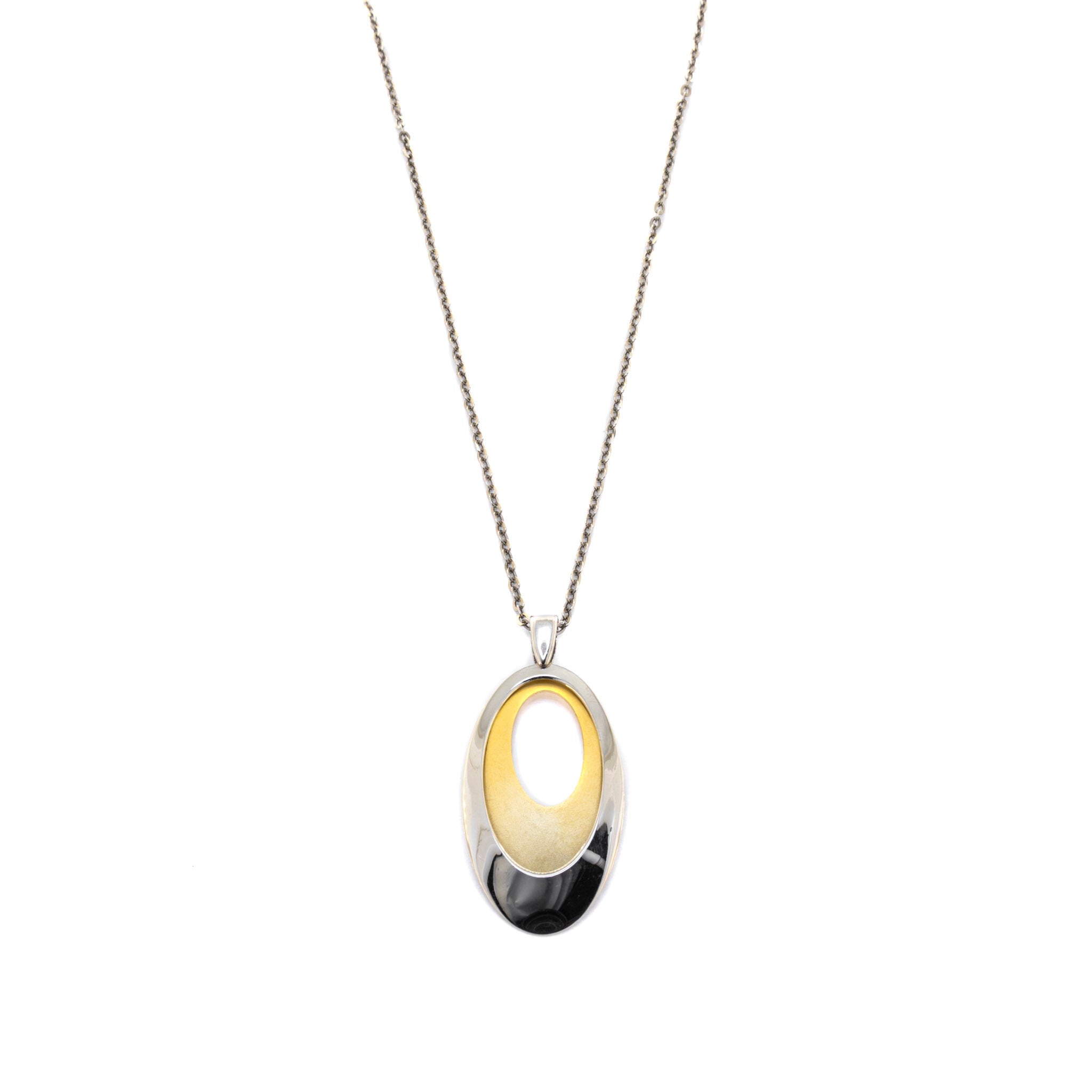 Elongated oval in contrasting tones. Minimalist elegance in motion.