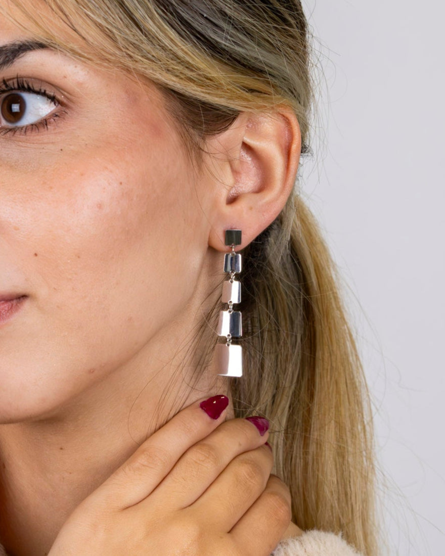 Geometric shapes cascading downwards. Architectural movement that frames the face.