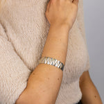 Matte silver base with a gold geometric pattern. Bold contrast.