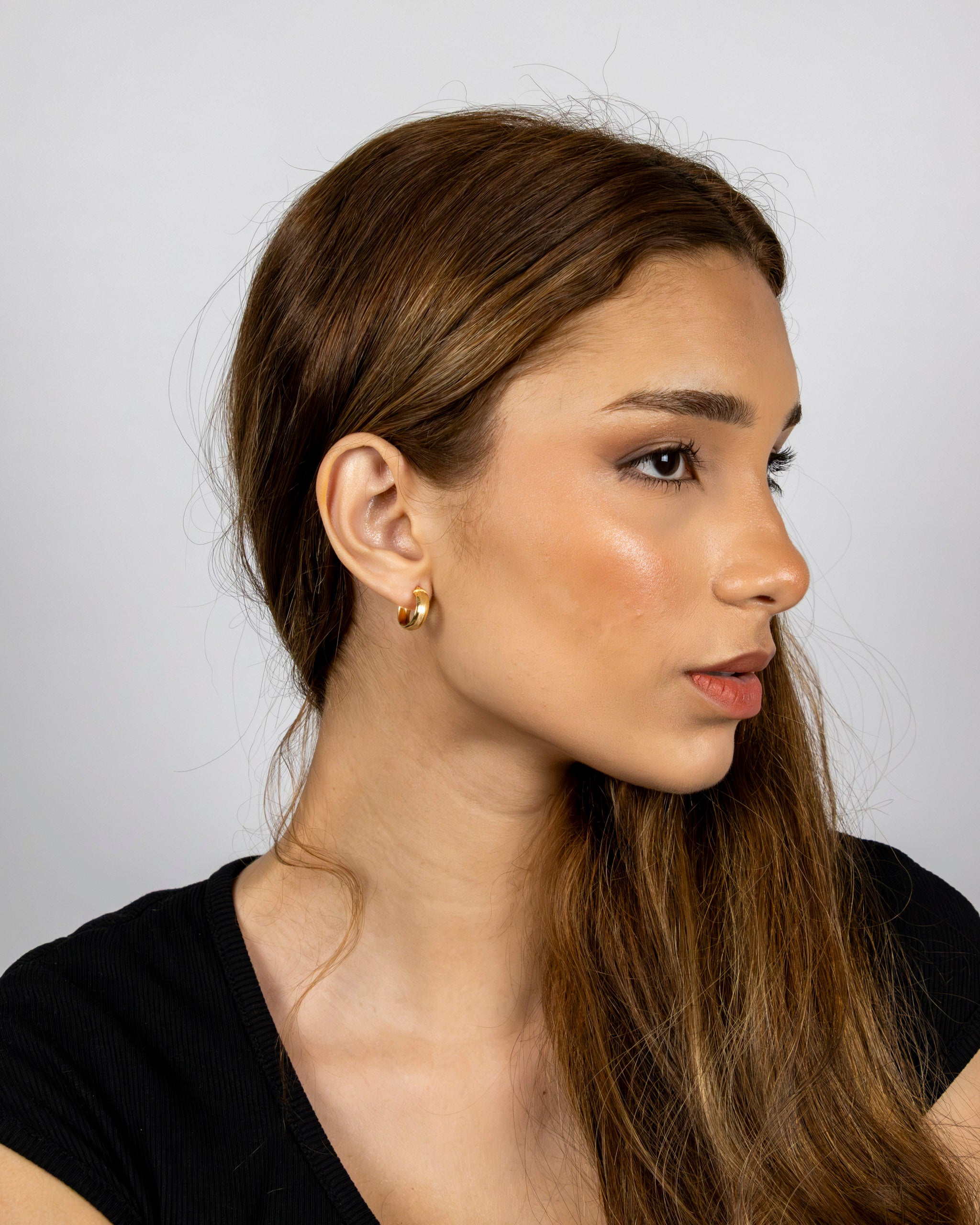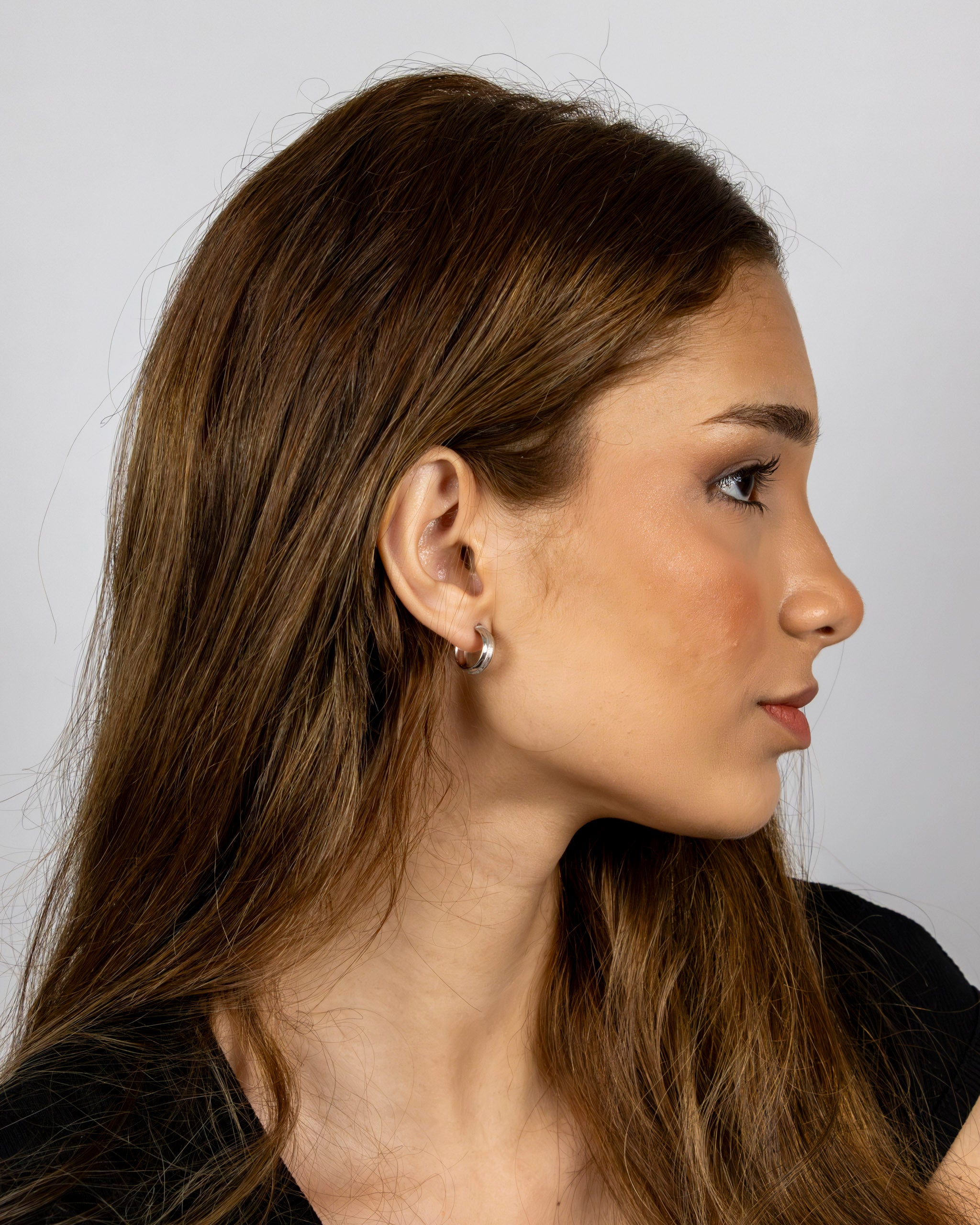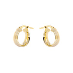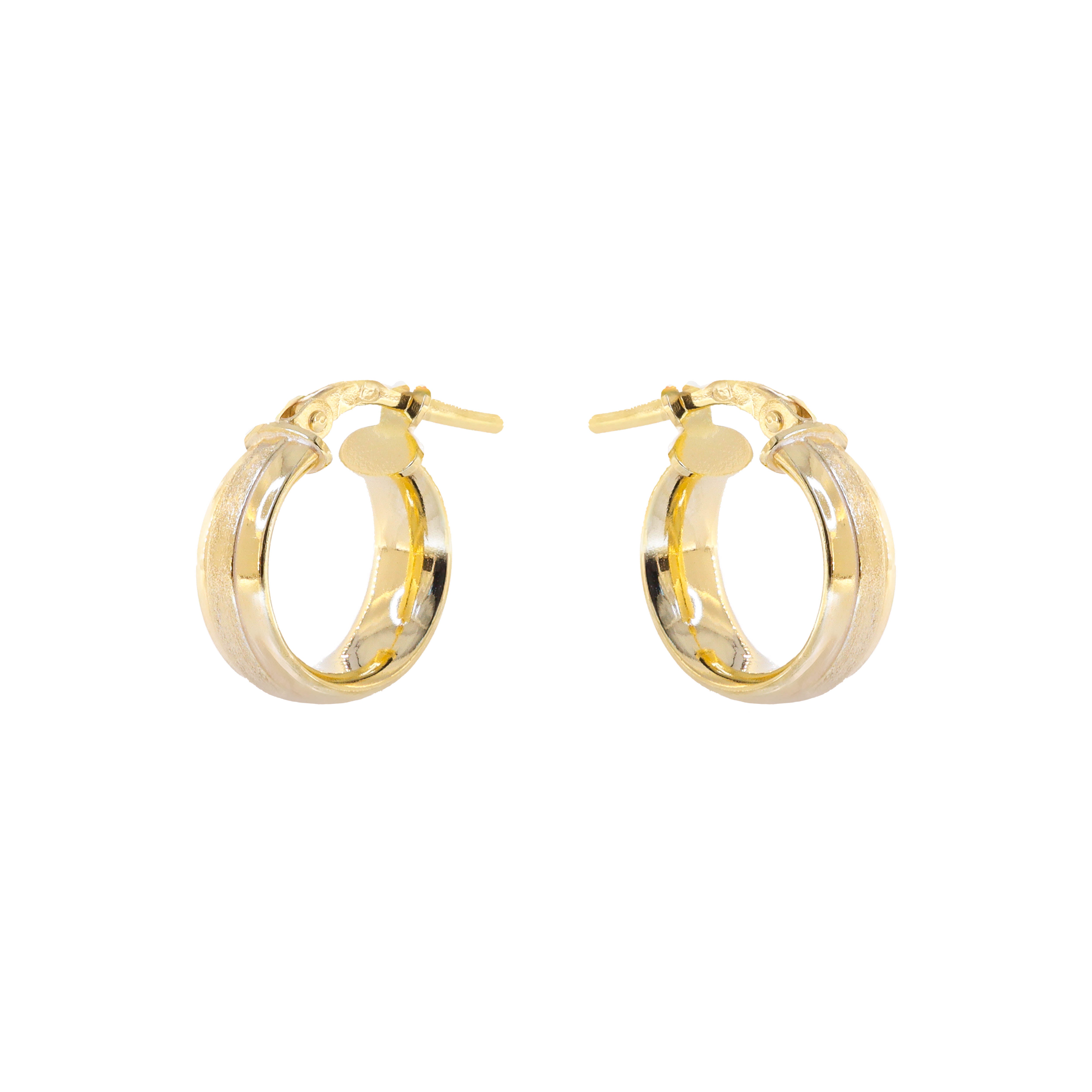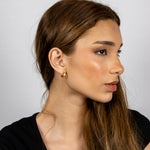 Abraça a dualidade com os Brincos Mnemósine, onde duas faixas douradas contrastantes - uma polida e outra texturizada - se unem numa argola sofisticada. Esta peça contemporânea celebra a harmonia entre opostos, criando um acessório que captura diferentes reflexos de luz numa narrativa visual rica e envolvente