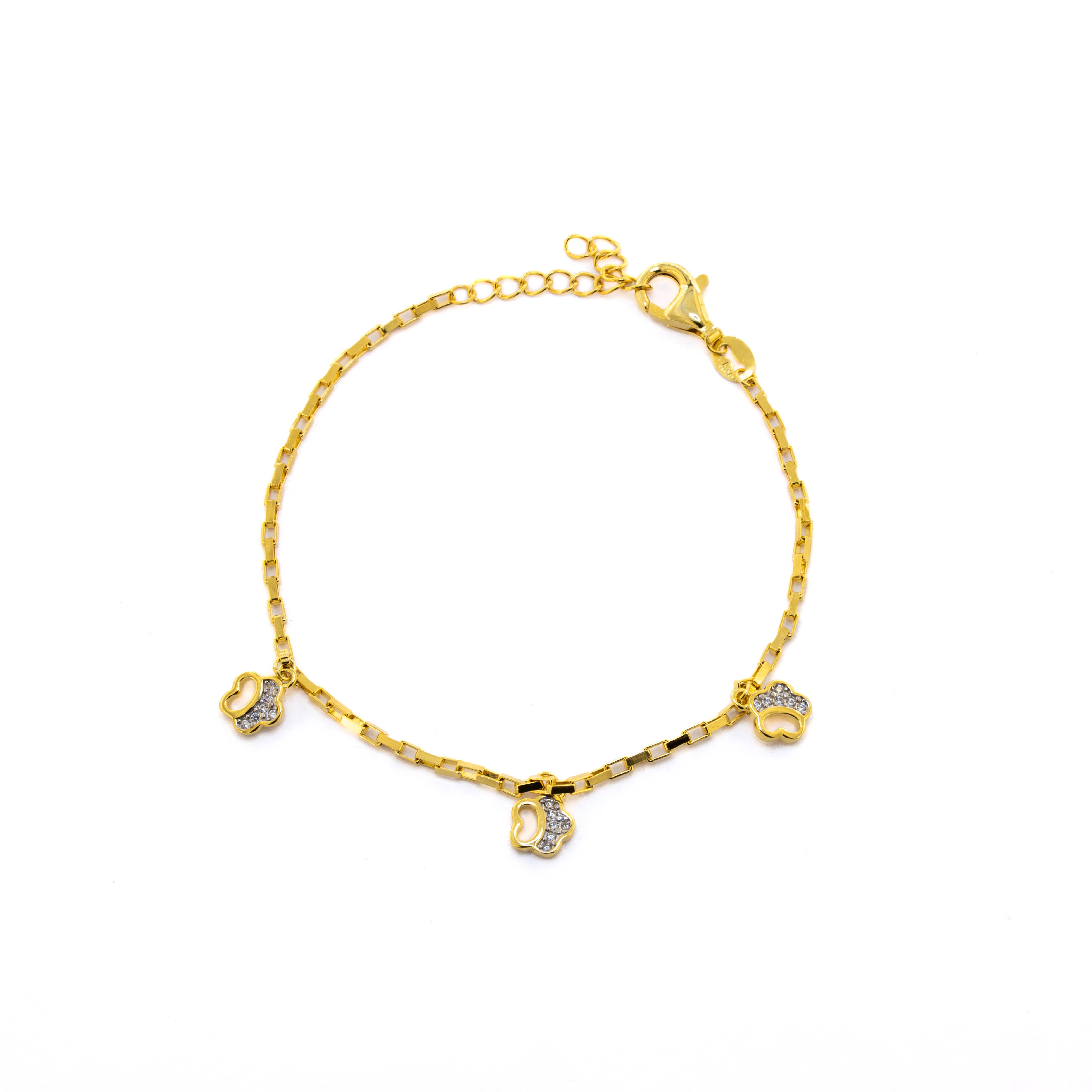 Brilha com a Pulseira Calisto, onde três estrelas douradas cravejadas de cristais dançam numa corrente geométrica refinada. Esta peça celestial captura a magia do firmamento numa linguagem contemporânea, oferecendo um acessório que ilumina o teu pulso com o encanto estelar e a promessa de sonhos realizados